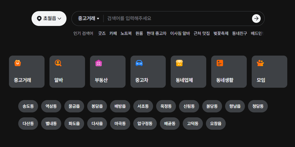 또한 거래 지역 설정이 모바일 앱처럼 정밀하진 않기 때문에, 위치 기반 추천 기능은 모바일에서 사용하는 것이 더 정확합니다.